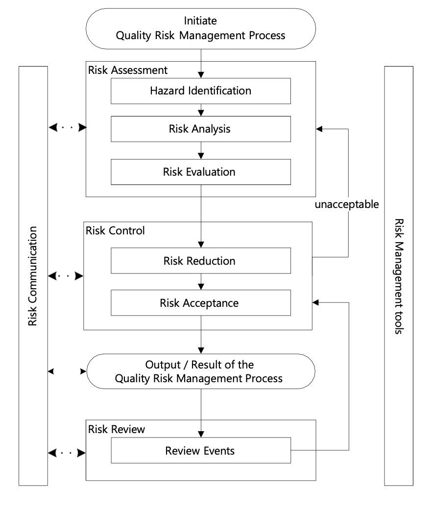 The diagram represents a model for quality risk management, although other models may also be applicable.